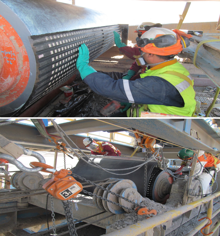 Mantención mecánica Industrial (Cambio de polines, cambios y ajuste de guarderas, preparación y cambios de planchas de desgaste a chutes de alimentación y traspaso.)
